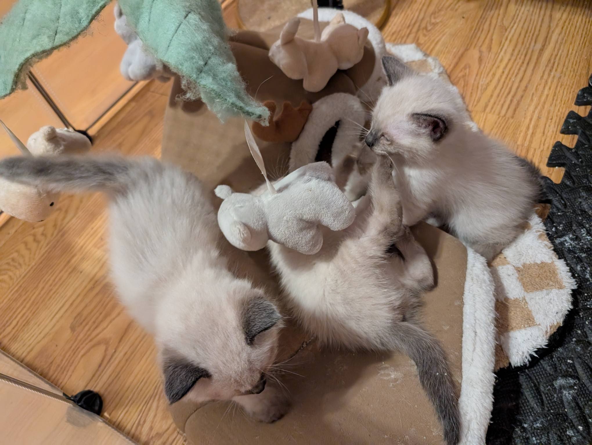 The parent cats are part of our family and embody the intelligence, affection, and beauty that define the Siamese breed, and are then carried forward in their kittens.